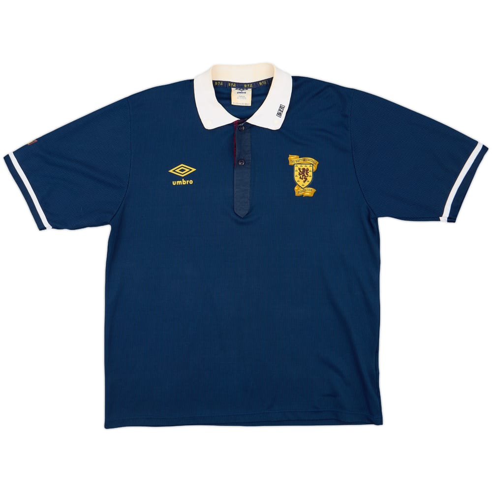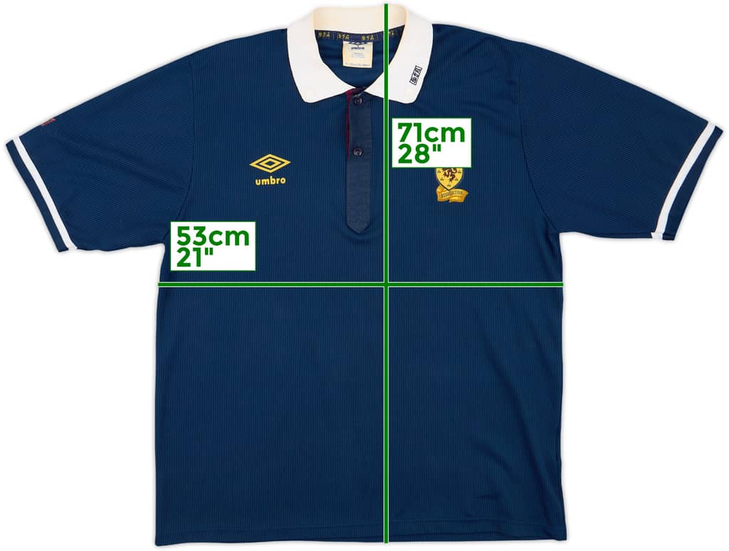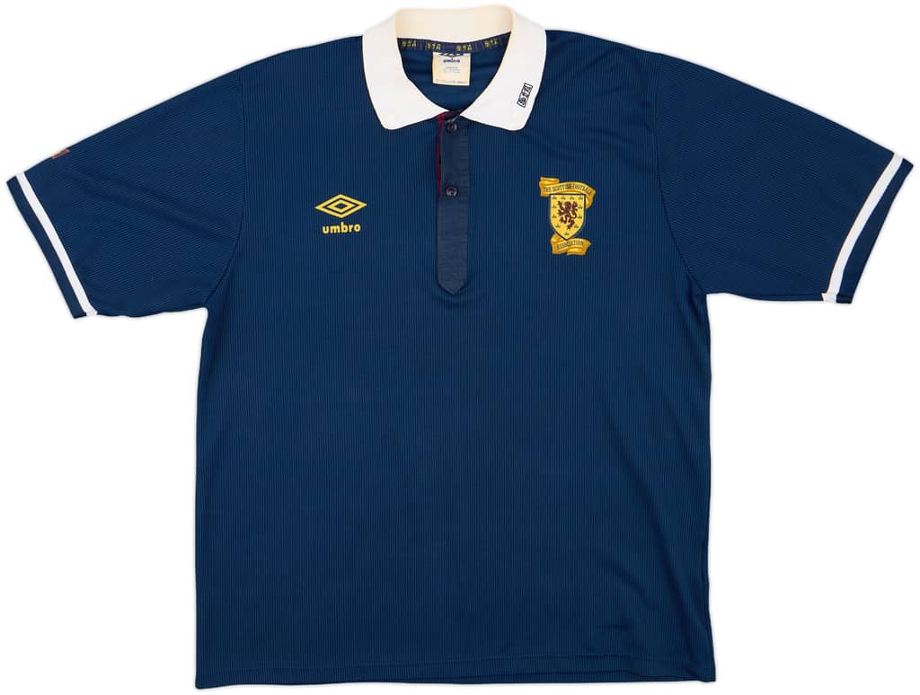 Classic design home shirt as worn by Scotland at the 1990 World Cup in Italy. In a tough group, including world football giants Brazil, Scotland finished third in their group, meaning they would head home after the group stages of the tournament