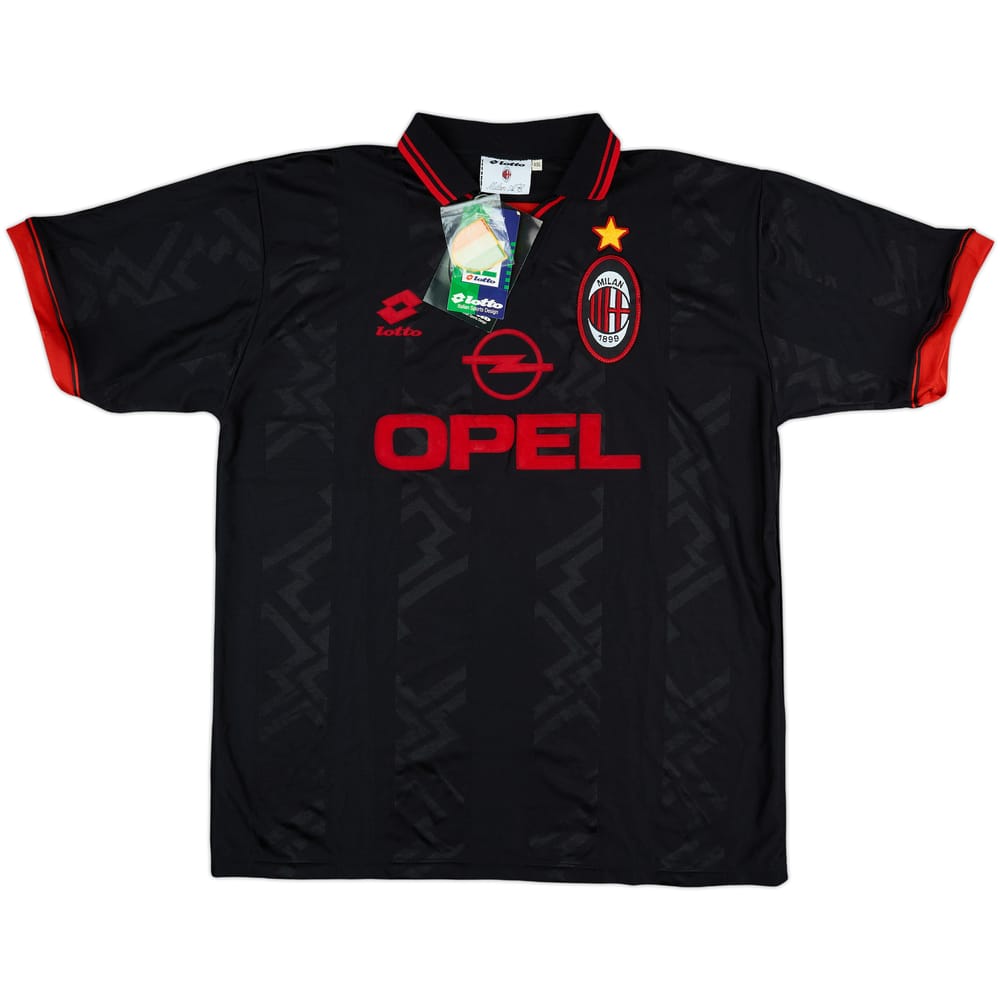 Rare third shirt that was worn in the Amsterdam Arena Inauguration match against Ajax played on the 14th August 1996. Milan got some revenge for their '95 Champions League Final defeat to the Dutch giants by spoiling the opening ceremony for their new stadium with a 3-0 rout. Savicevic, Simone and Albertini got the goals in a thoroughly impressive display by the Rossoneri.