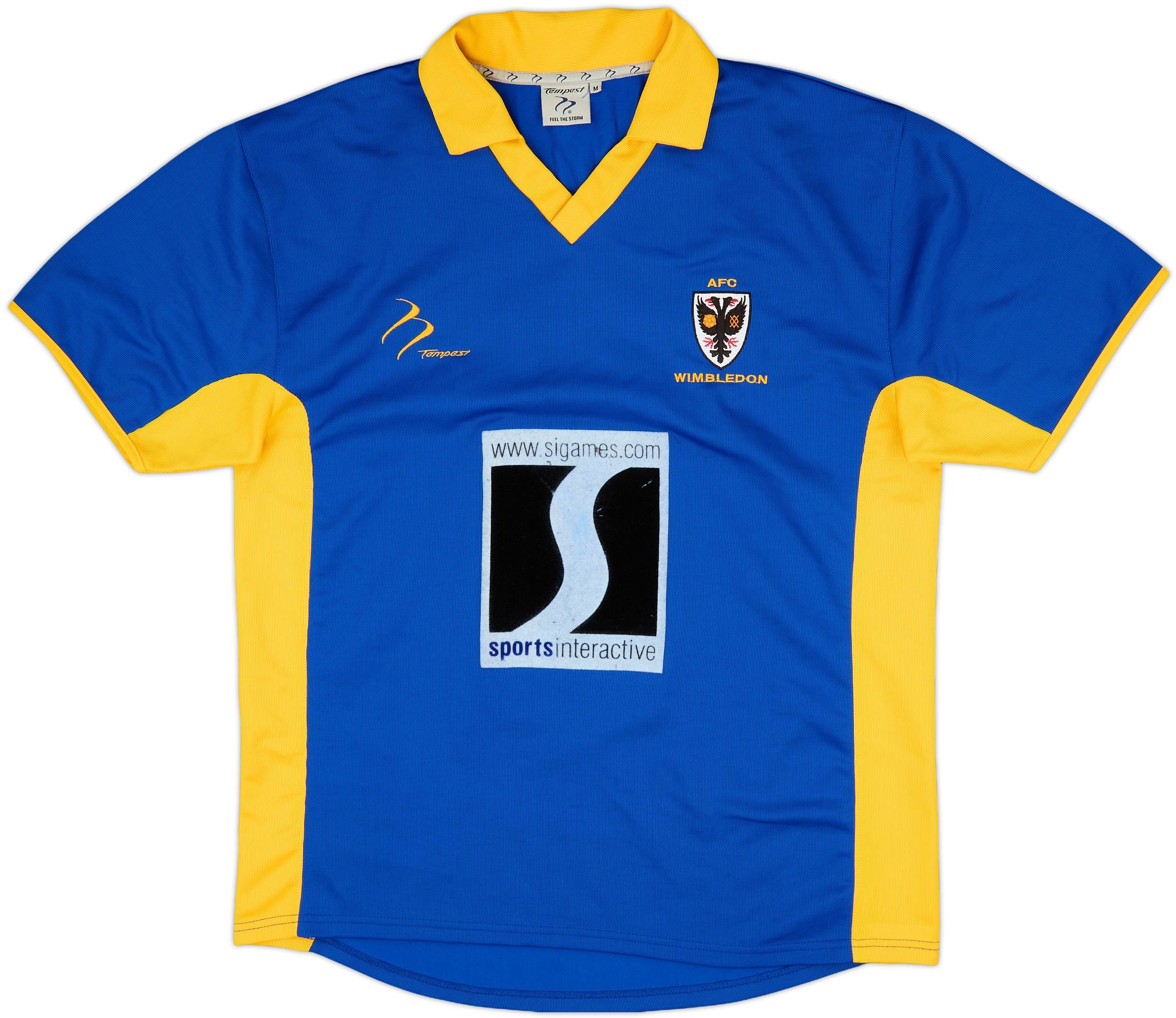 Home shirt as worn during 02-03 season. Sponsored by GO MK, Wimbledon continued to play at Selhurst Park as a temporary home ahead of their controversial move to Milton Keynes was yet to be found. On the pitch, the Dons finished tenth in the Football League First Division