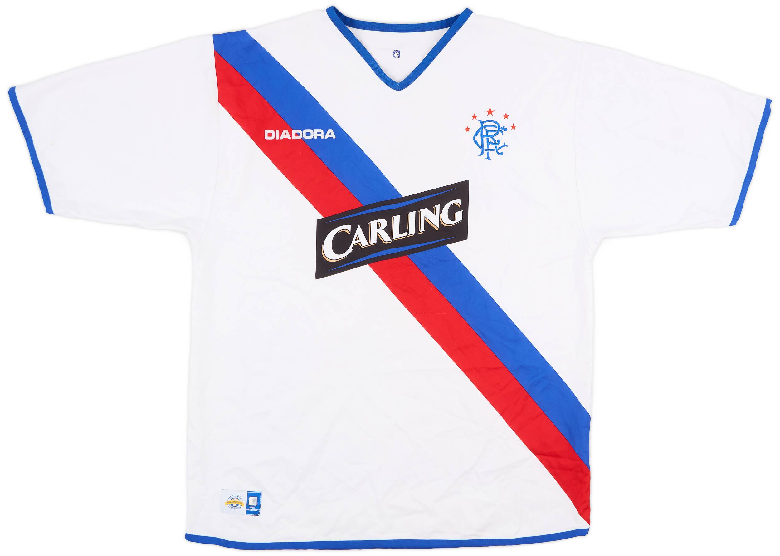 Away shirt as worn by Alex McLeish’s side when they won a League and League Cup Double. Rangers pipped city rivals Celtic to the title by just one point with the two Glasgow sides finishing over 30 points clear of 3rd place Hibernian. Rangers dominated the League Cup, dispatching Aberdeen and Celtic before a comprehensive 7-1 mauling of Dundee United in the Semi-Final set up a Final meeting with Motherwell. Alex McLeish’s men carried their form on in the Final, with goals from Ross, Ricksen, Novo and a brace from Kyrgiakos sealing a 5-1 victory