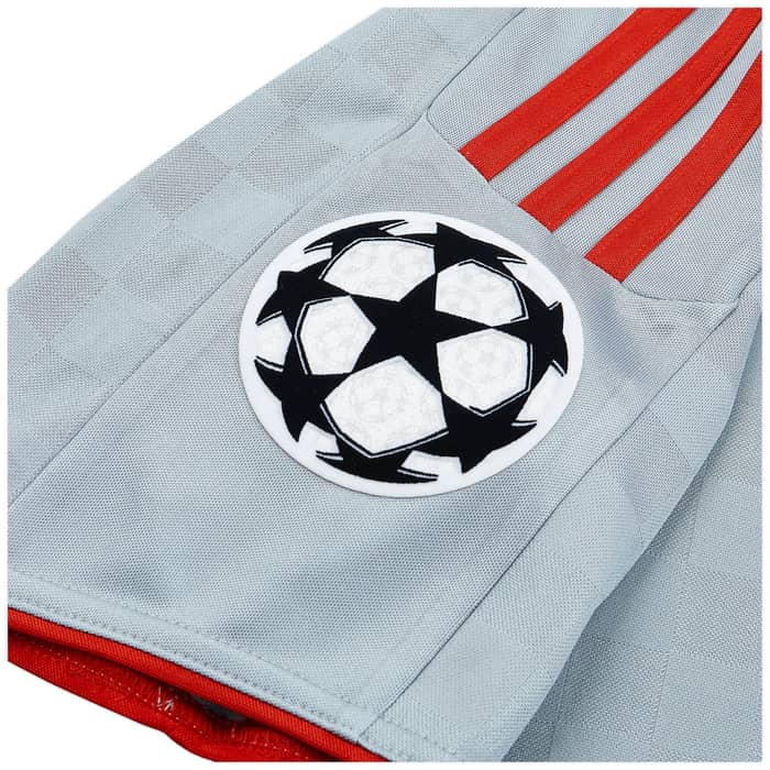 This grey away shirt produced by adidas is a fan favorite from a memorable season, most notably worn in the 4-1 humiliation of Manchester United at Old Trafford when Steven Gerrard famously kissed the camera after scoring from the penalty spot. It was worn by a team of superstars, including Steven Gerrard and Fernando Torres, as they mounted a brilliant challenge for the Premier League title. This jersey is a symbol of a team that played with heart and soul for the famous badge.