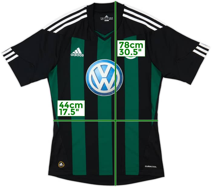 Rare away shirt as worn during a nightmare season for Die Wölfe, narrowly avoiding relegation despite a strong squad. Steve McClaren was replaced by Felix Magath, who benched Brazilian playmaker Diego and led the side to safety with a 15th place finish, just 2 points above Mönchengladbach in the relegation playoff zone. Despite leaving in January for Manchester City, Bosnian striker Edin Džeko would finish as top scorer with 10 goals