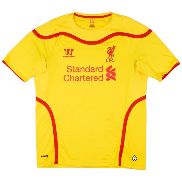 A vibrant yellow and red striped Warrior shirt, this jersey is a fan favorite.This jersey worn by a team of stars, including Philippe Coutinho and Steven Gerrard in his final season at the club. The team's fighting spirit and determination were on full display throughout the season, even though the side struggled for consistency. The Reds managed strong cup runs to reach the semi final of both cup competitions, bowing out to Aston Villa and Chelsea in the FA Cup and League Cup respectively. This jersey is a beautiful reminder of a team that was always pushing for success.