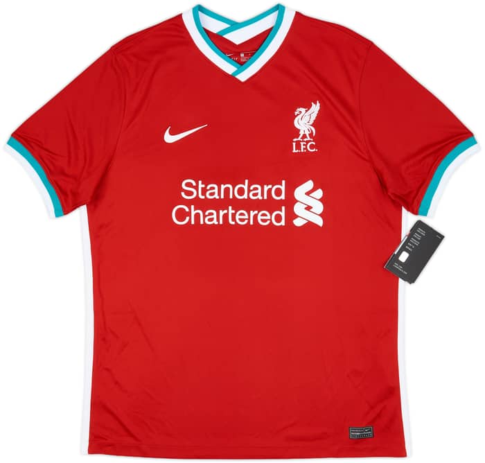 A vibrant home shirt from Nike, this was worn by the defending Premier League champions. It was a season of incredible challenges, including a major injury to key man Virgil van Dijk early in the campaign, but Jurgen Klopp's side showcased their fighting spirit and resilience. The team fought hard to secure a place in the Champions League, ending the season on a high with goalkeeper Alisson's last-minute goalscoring heroics, with his glancing header at West Brom proving vital to their top four chances. The season is also remembered for setting the longest unbeaten run at home in the league (which had previously stood at 63) with a 3–0 win over Leicester City
